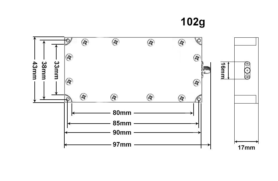 โมดูลเครื่องรบกวนสัญญาณ UAV FPV LDMOS S connector น้ำหนักเบา 10W