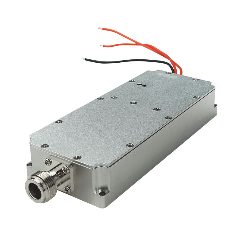 นี่คือส่วนประกอบหลักที่สร้างขึ้นเพื่อทำลายสัญญาณโดรน. มันคือโมดูลขยายกำลังไฟฟ้าความถี่วิทยุ (RF)ที่ทำหน้าที่เป็น "กล้ามเนื้อ" สำหรับเครื่องรบกวนโดรน (ระบบต่อต้าน UAS). มันรับสัญญาณอ่อนและเพิ่มเป็น50 วัตต์จากนั้นออกอากาศผ่านเสาอากาศเพื่อปิดกั้น ขัดขวาง และปิดการใช้งานโดรนที่ไม่ต้องการโดยการครอบงำการควบคุม, GPS และลิงก์วิดีโอ