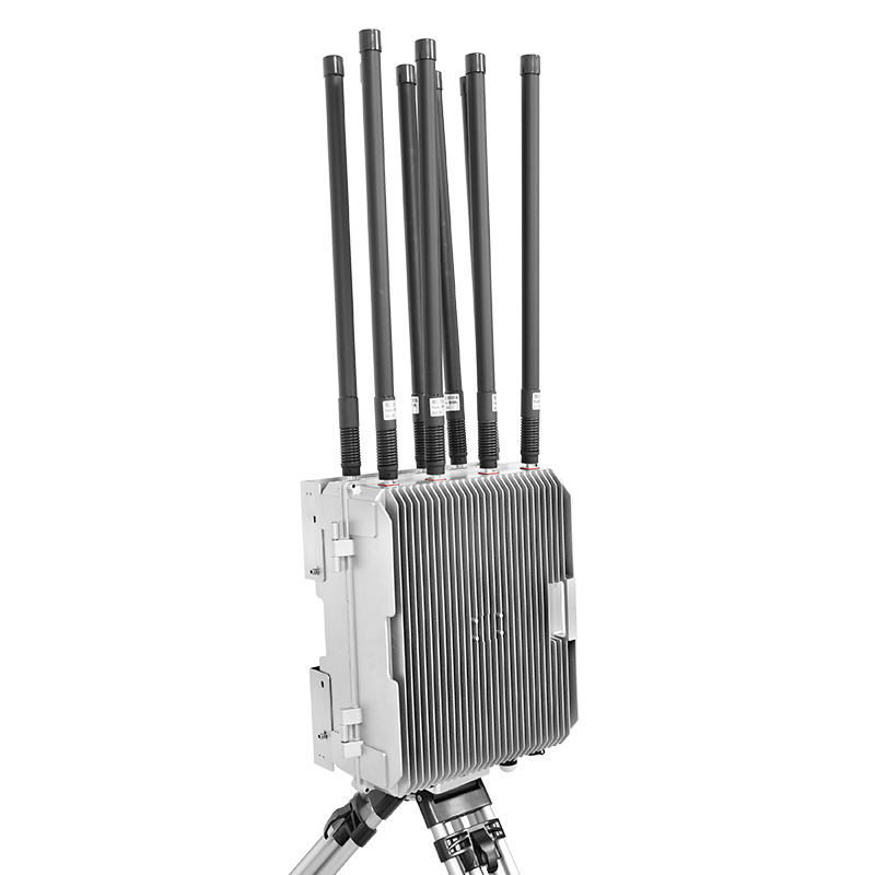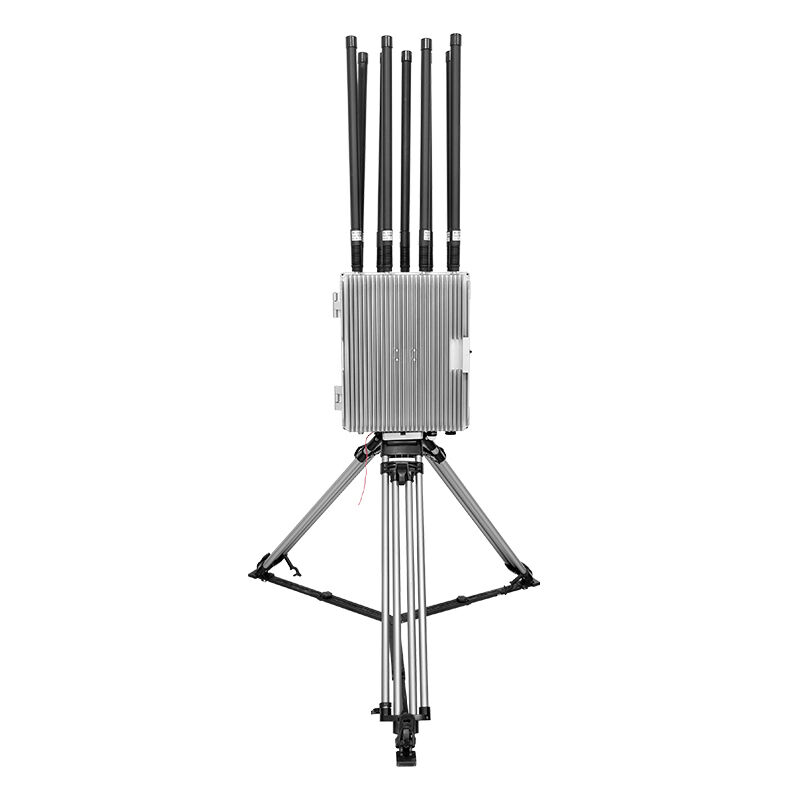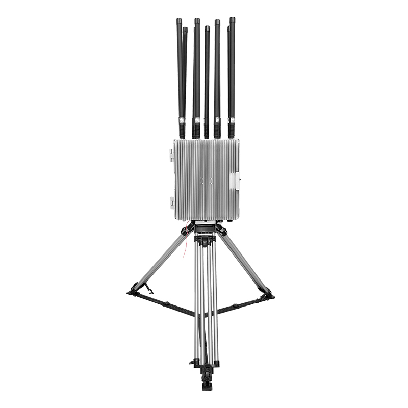 นี่คืออุปกรณ์รบกวนโดรนภายนอกแบบรอบทิศทางพร้อมการตรวจจับแบบกิมบอล ภายนอกผลิตภัณฑ์ทำจากอลูมิเนียมคุณภาพสูงที่มีการนำไฟฟ้าสูงและคุณสมบัติกันน้ำ อุปกรณ์รบกวนแบบทิศทางขนาดเล็กหกตัวต้องติดตั้งร่วมกันเพื่อตรวจจับและโจมตีโดยอัตโนมัติเพื่อให้การป้องกันแบบ 360 องศาสำหรับพื้นที่ระดับต่ำหรือระดับสูง ผลิตภัณฑ์นี้มีการออกแบบการระบายความร้อนที่ด้านล่างและรองรับการทำงานกำลังสูงภายนอก ไม่ได้มาพร้อมกับแบตเตอรี่ แต่มาพร้อมกับแหล่งจ่ายไฟประสิทธิภาพสูงพิเศษ 220V สามารถระบุและรบกวนโดรนรอบข้างโดยอัตโนมัติในทุกทิศทางเพื่อปกป้องความปลอดภัยในสถานที่