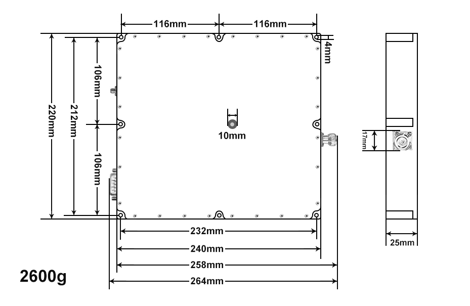 Note: 1. The overall dimensions are for reference only; 2. The size can be appropriately increased or decreased according to the customer's requirements; 3. The positions of the input interface, output interface and power supply interface can be changed according to the actual needs of the customers.